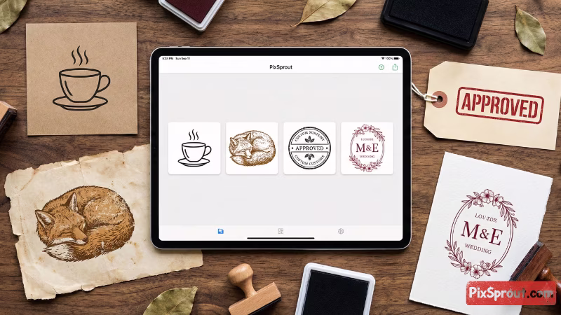 Master PixSprout's Image to Stamp maker. Learn how to upload photos, customize text rings, remove backgrounds with AI, and export high-quality transparent stamp designs.