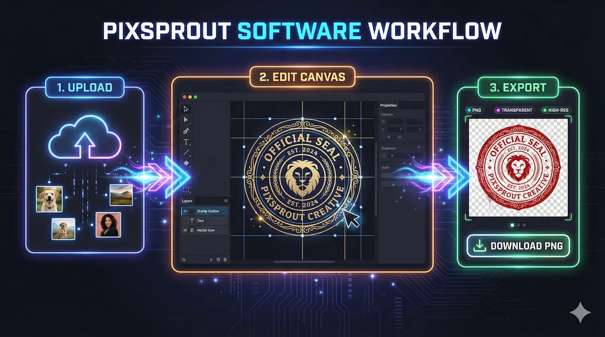 Learn how to generate custom stamp from text prompt using PixSprout AI. Create professional logos, vintage seals, or art in seconds. No design skills needed.